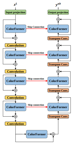 Visual representation of the transformer-based model architecture used for image colorization.